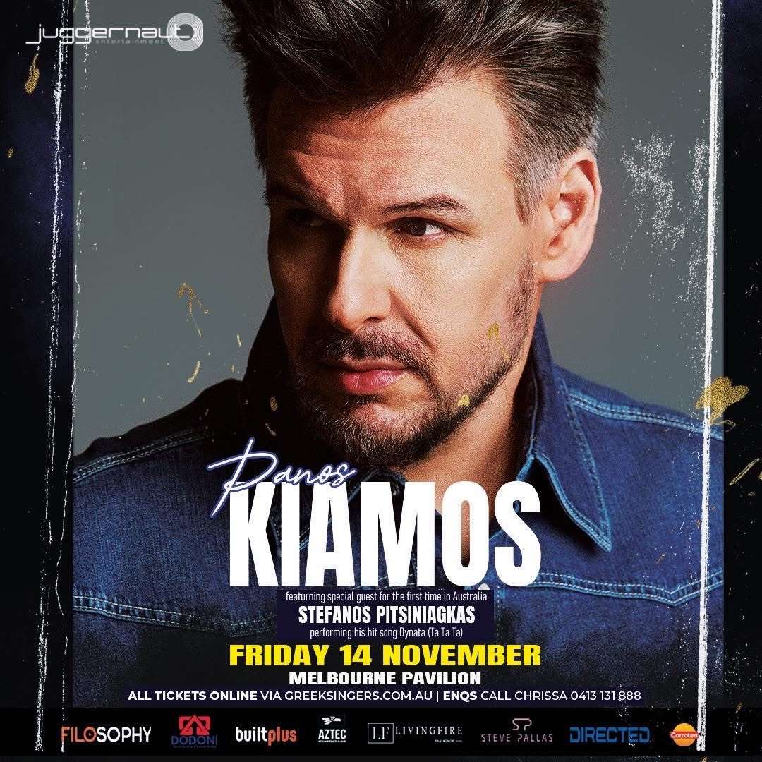 Greek music sensation Panos Kiamos is bringing his dynamic live show to Melbourne for one night only! Known for his powerhouse vocals and chart-topping hits, Kiamos will light up the stage at the iconic Melbourne Pavilion.